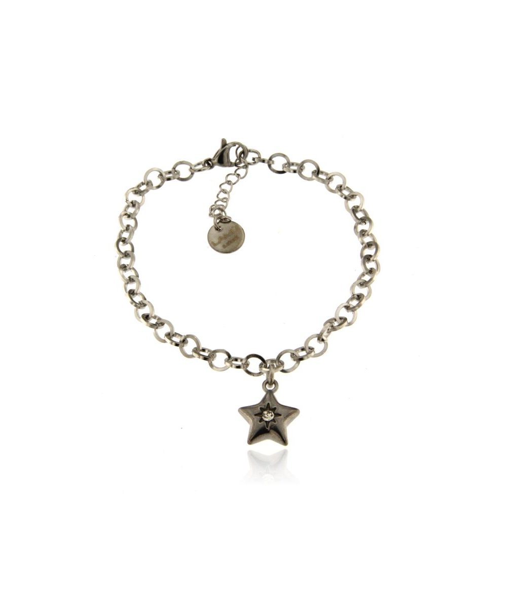 Bracciale in acciaio inox con pendente stella con punto luce cristal