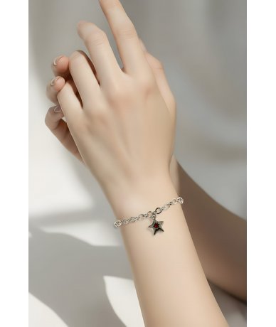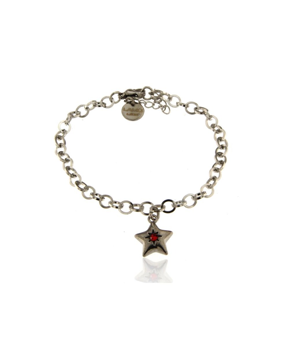 Bracciale in acciaio inox con pendente stella con punto luce rosso