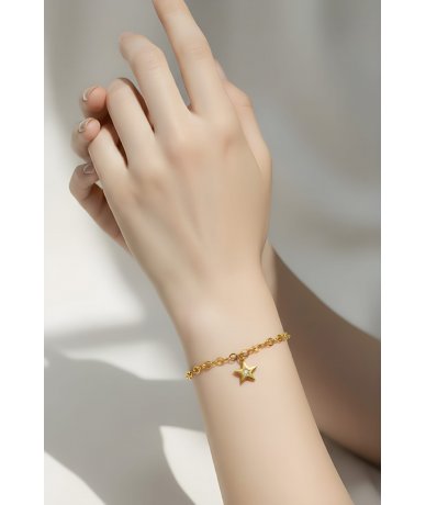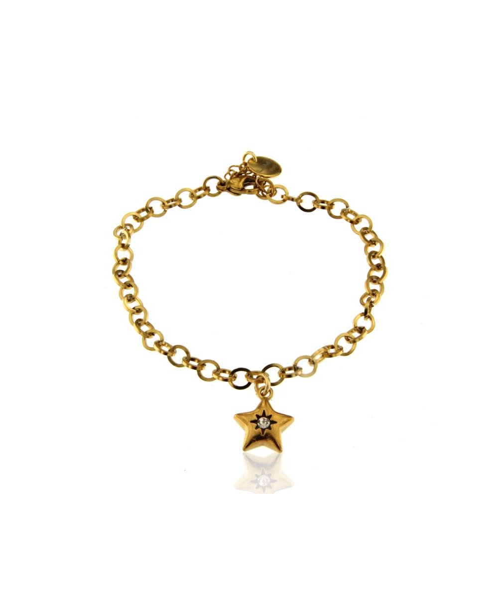 Bracciale in acciaio inox placcato oro 18k con pendente stella con punto luce cristal
