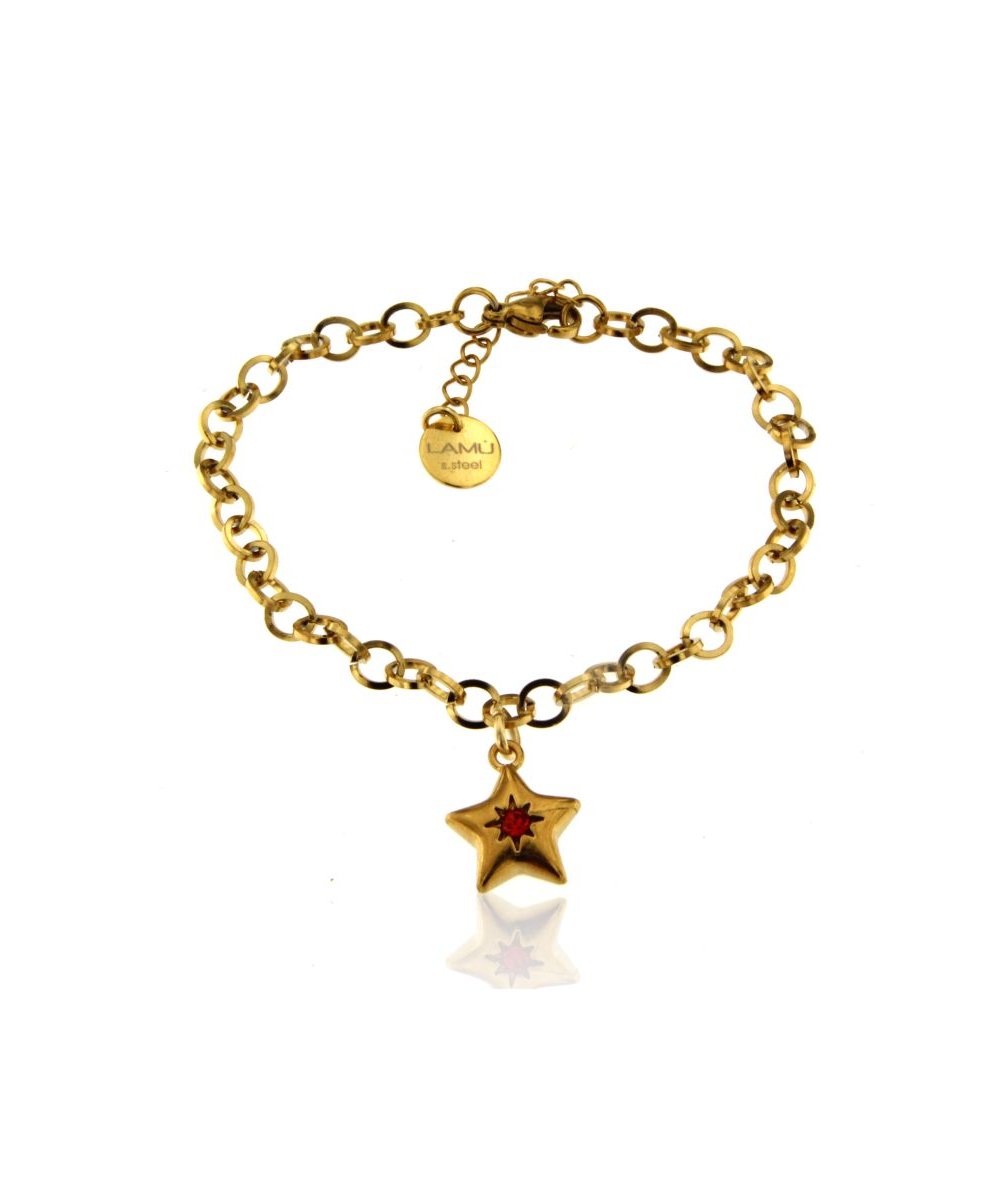 Bracciale in acciaio inox placcato oro 18k con pendente stella con punto luce rosso