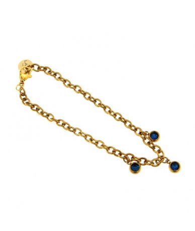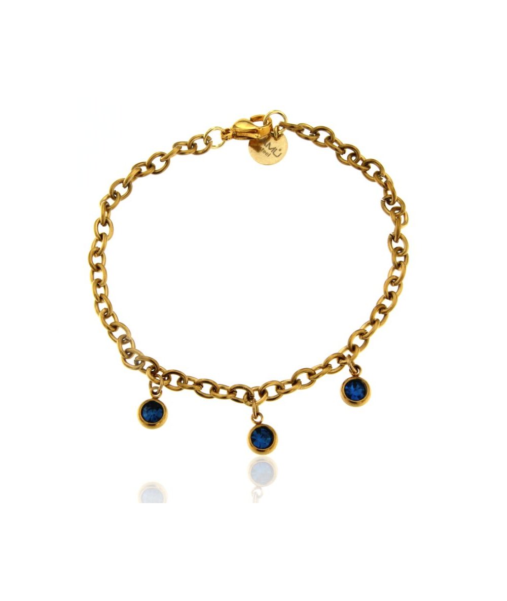 Bracciale con punti luce blu pendenti in acciaio inox placcato oro 18k