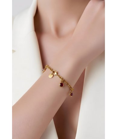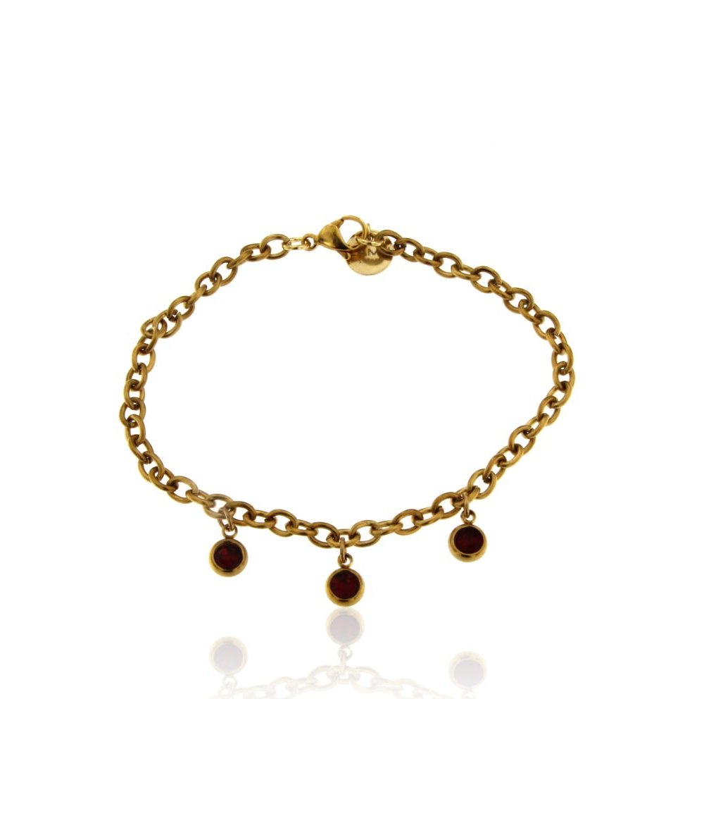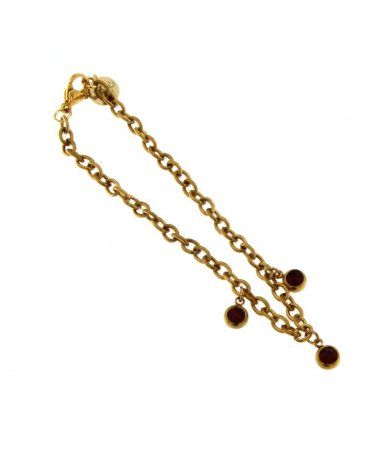 Bracciale con punti luce rosso pendenti in acciaio inox placcato oro 18k