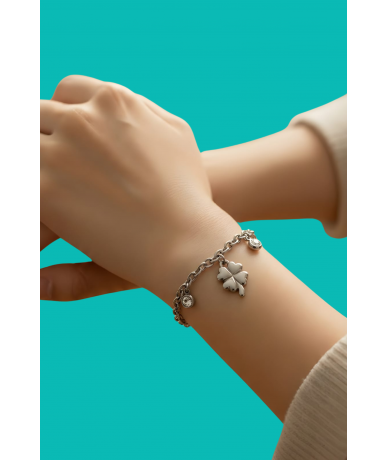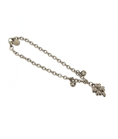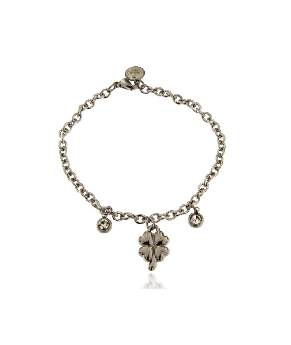 Bracciale con punti luce cristal e pendente quadrifoglio in acciaio inox