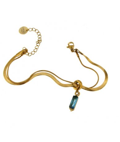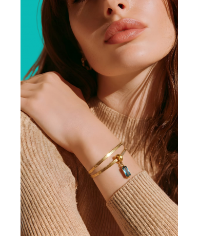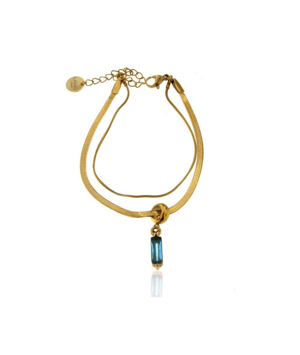 Bracciale spina di pesce con pendente zircone cubico blu fiordaliso in acciaio inox placcato oro 18k