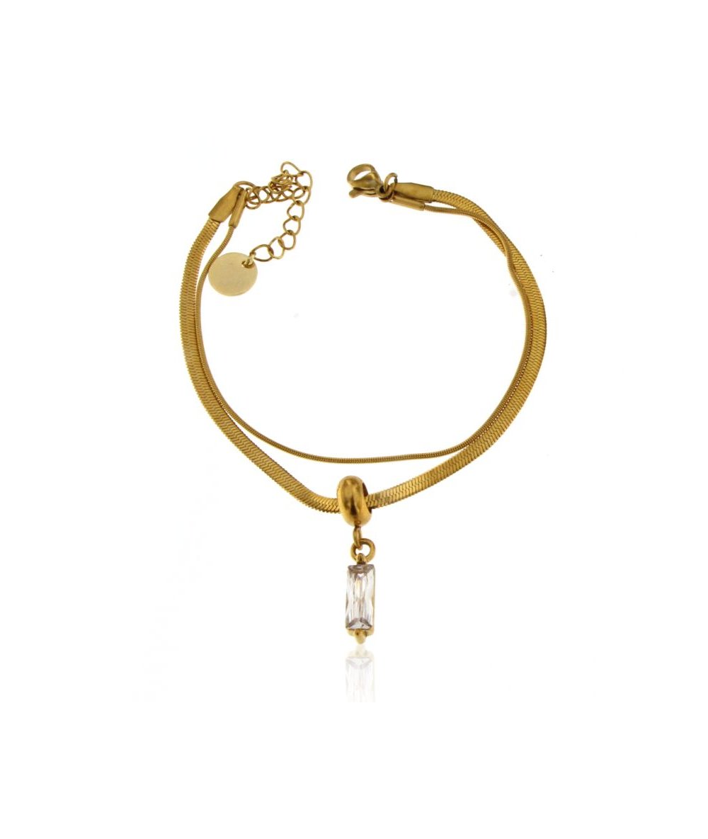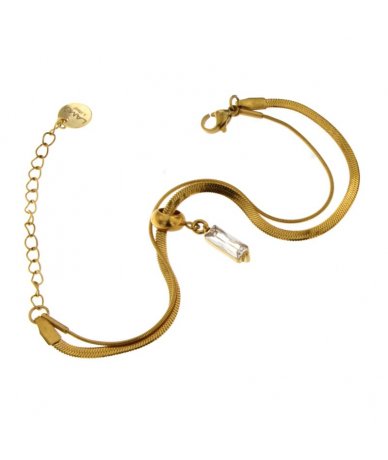 Bracciale spina di pesce con pendente zircone cubico cristal in acciaio inox placcato oro 18k