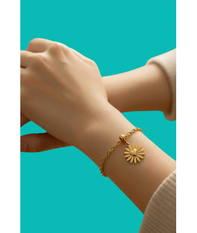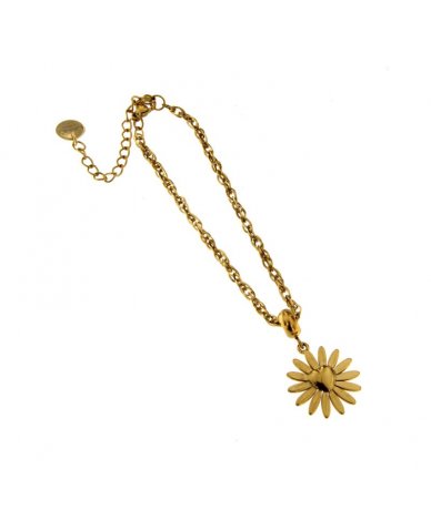 Bracciale con pendente margherita con cuore in acciaio inox placcato oro 18k