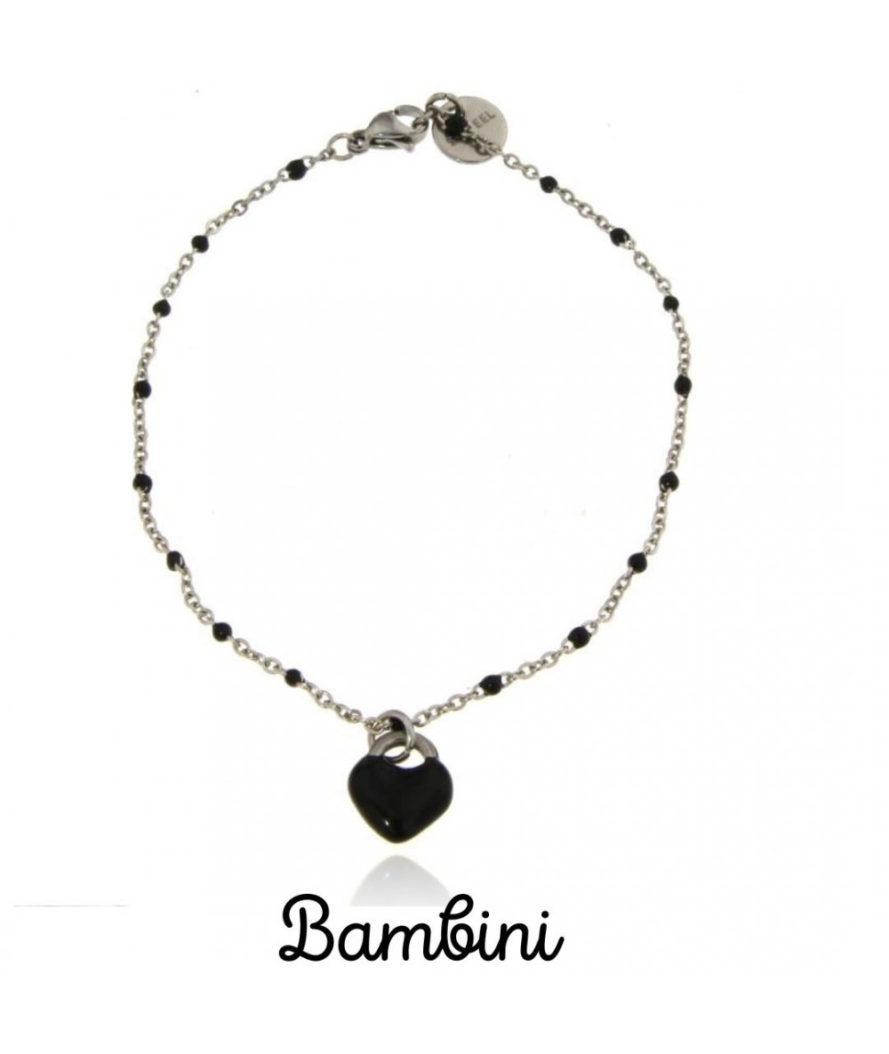 Bracciale bambina con charm cuore bombato smaltato nero in acciaio inox - Lamù gioielli