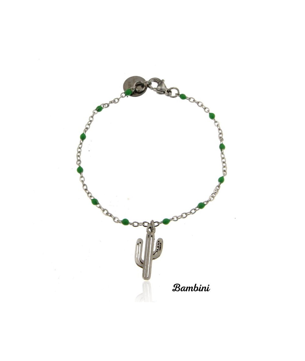 Bracciale bambino con charm cactus in acciaio inox - Lamù gioielli