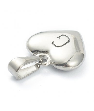 Charm cuore bombato con iniziale lettera G in acciaio inox