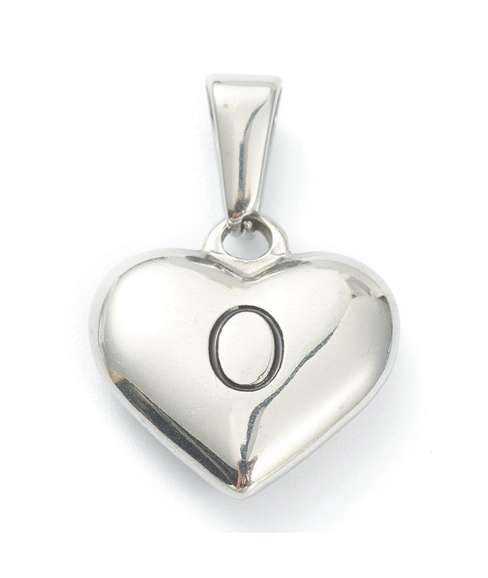 Charm cuore bombato con iniziale lettera O in acciaio inox - Lamù gioielli