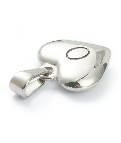 Charm cuore bombato con iniziale lettera O in acciaio inox