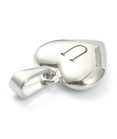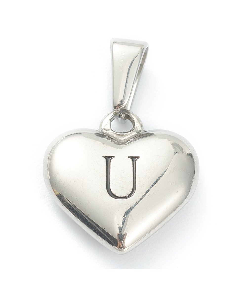 Charm cuore bombato con iniziale lettera U in acciaio inox