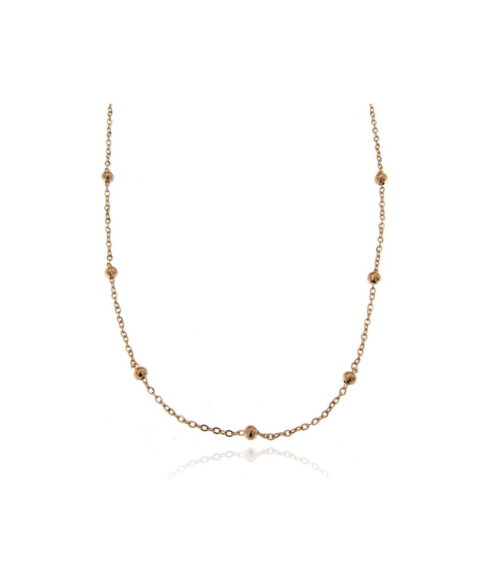 Collana catenina oro rosa 45 cm con sfere grandi in acciaio inox