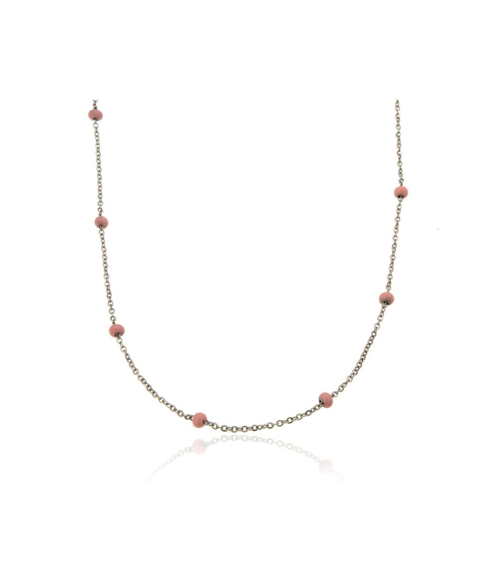 Collana in acciaio inox con sfere grandi smaltate rosa