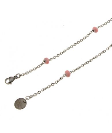 Collana catenina 40 cm in acciaio inox con sfere grandi smaltate rosa