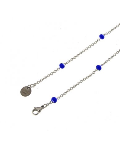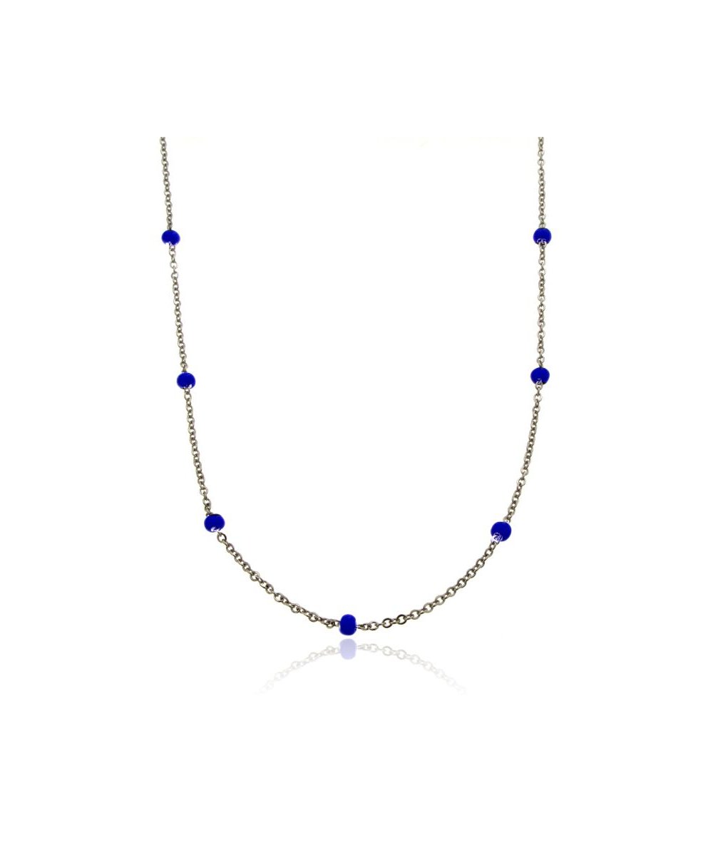 Collana catenina 40 cm in acciaio inox con sfere grandi smaltate blu