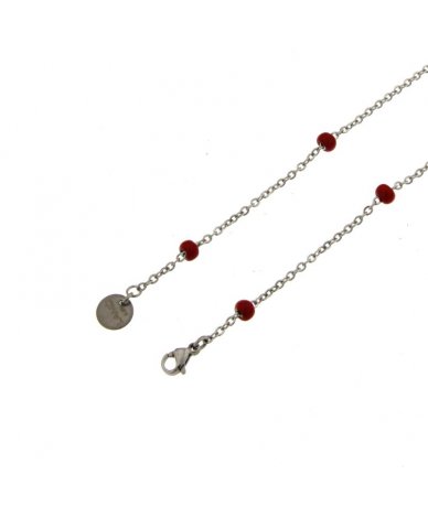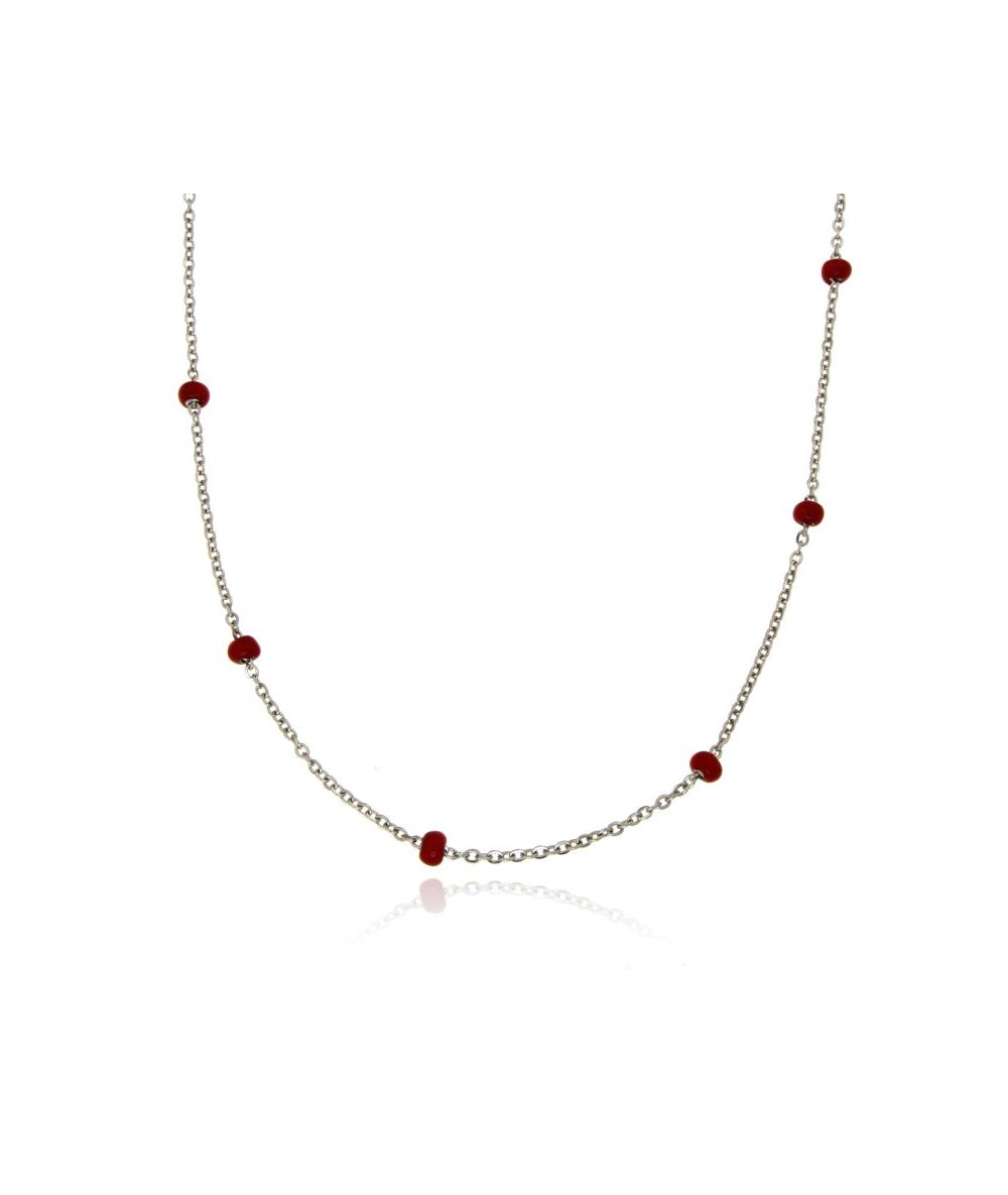 Collana catenina 40 cm in acciaio inox con sfere grandi smaltate rosse