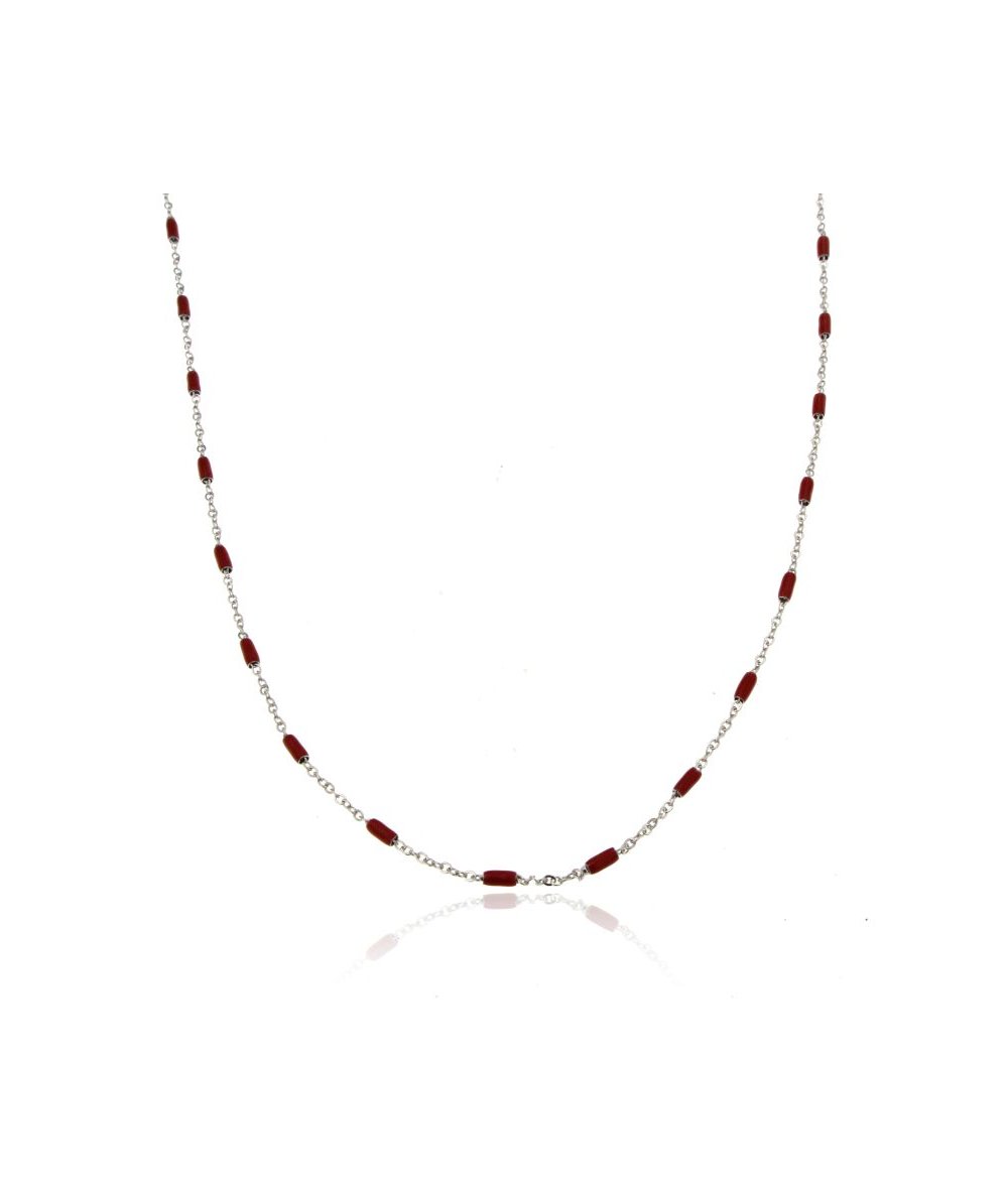 Collana donna 40 cm in acciaio inox con cilindri smaltati colore rosso