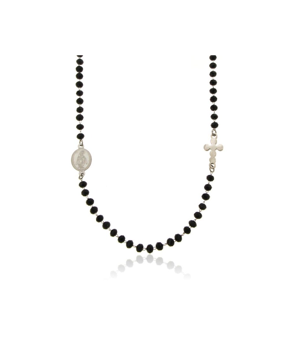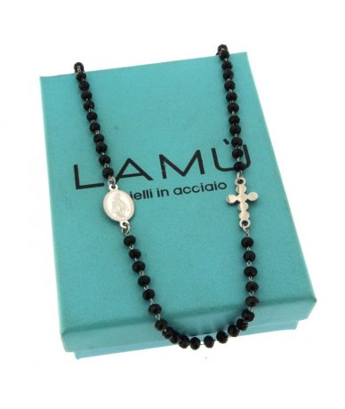 Collana rosario catena in acciaio inox con sfere in vetro colore nero - Lamù Gioielli