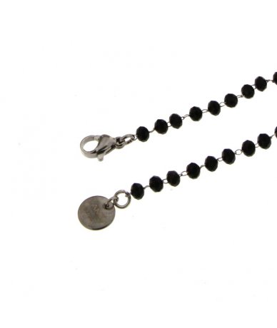Collana rosario catena in acciaio inox con sfere in vetro colore nero