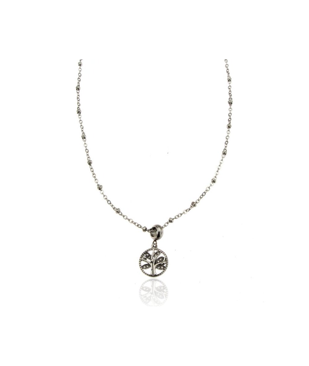 Collana in acciaio inox con albero della vita con zirconi