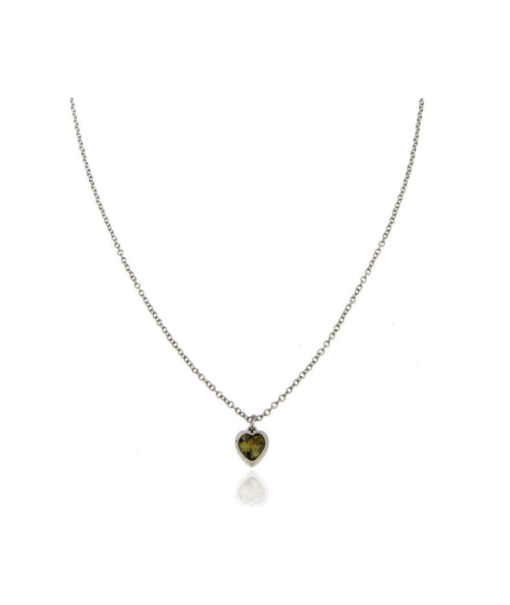 Collana in acciaio inox pendente cuore zircone verde chiaro
