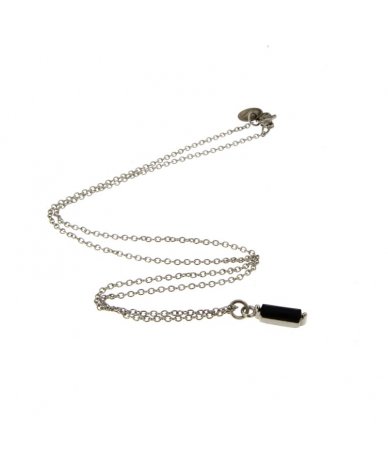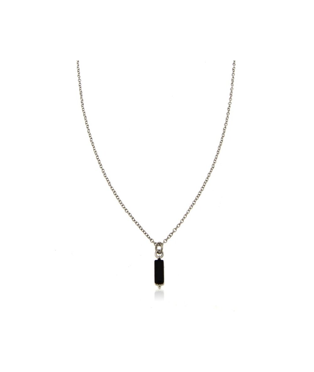 Collana in acciaio inox pendente rettangolare zircone nero