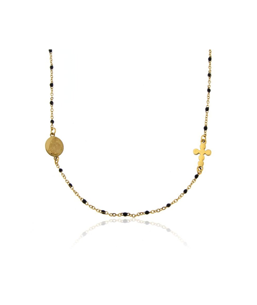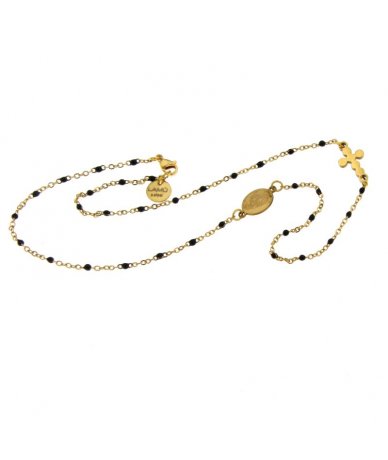 Collana rosario in acciaio inox con catena oro smaltata nera