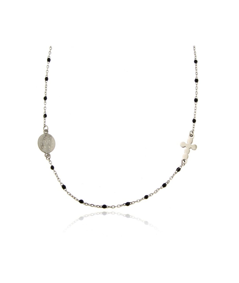 Collana rosario con catena smaltata colore nero in acciaio inox