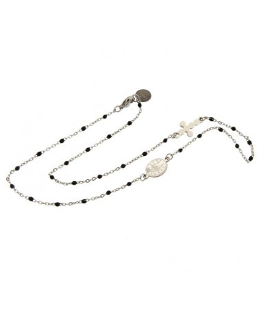 Collana rosario donna con catena smaltata colore nero