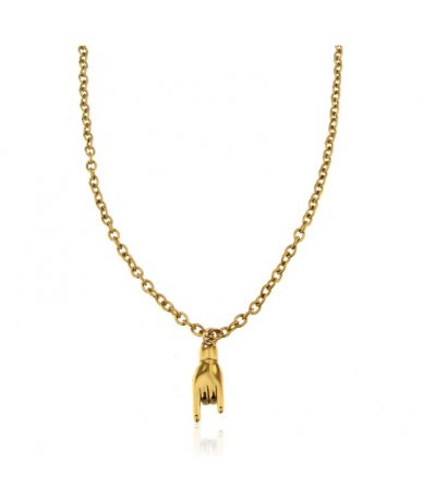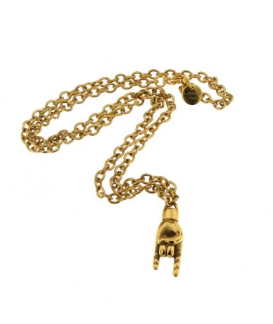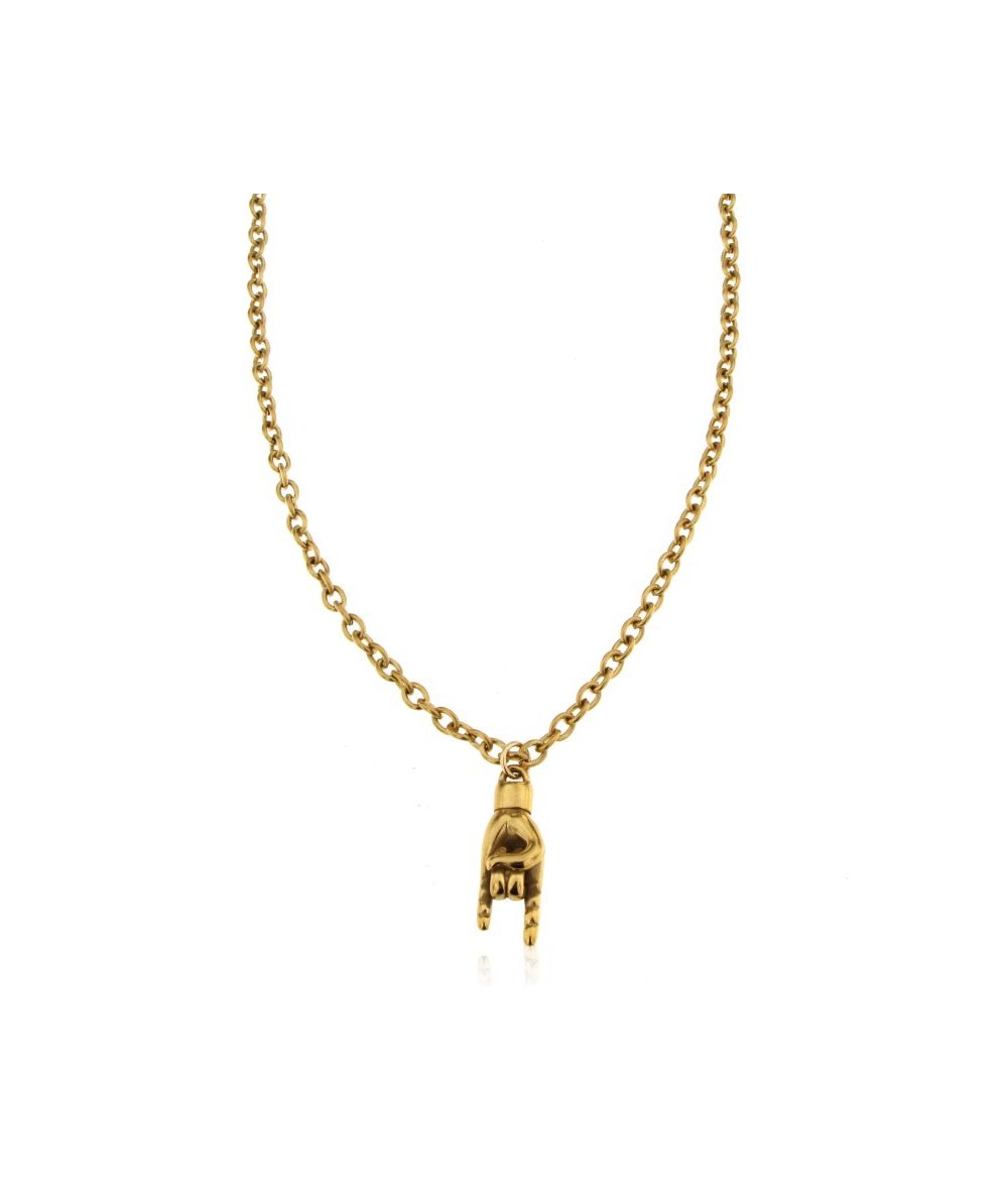 Collana lunga in acciaio inox finitura oro con pendente corna