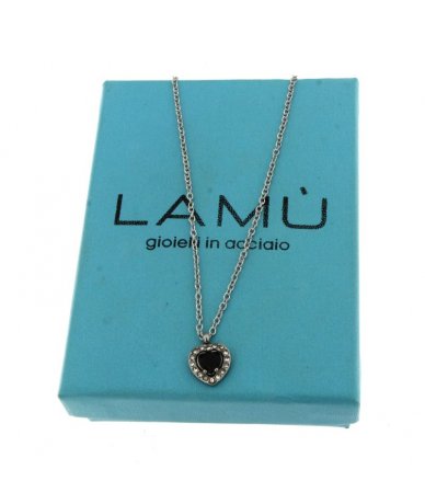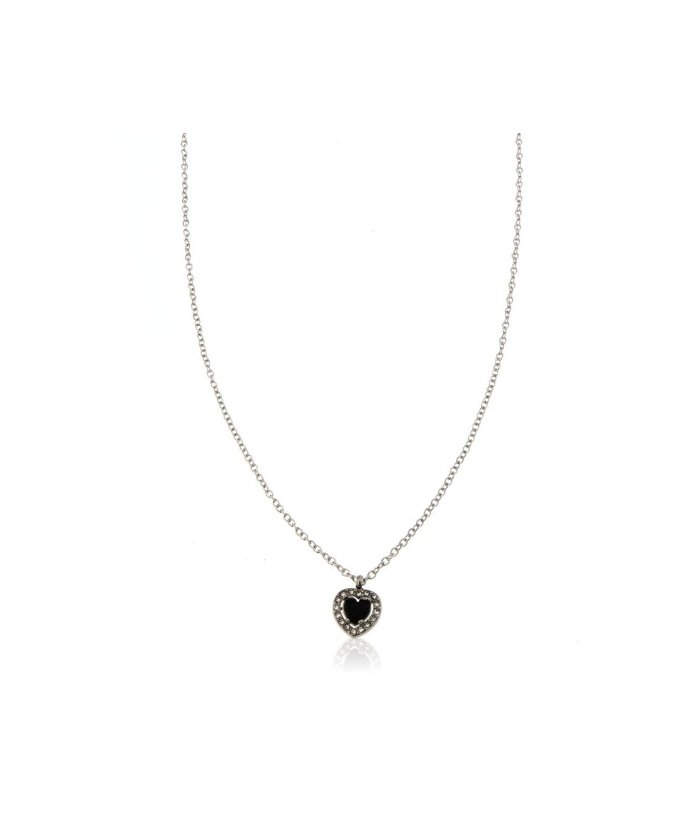 Collana in acciaio inox con charm cuore nero con zirconi