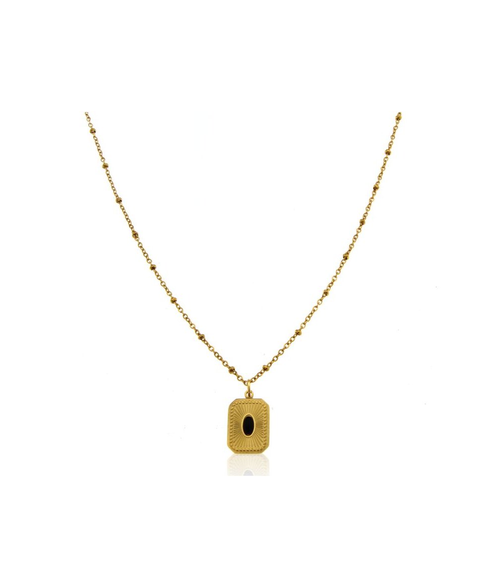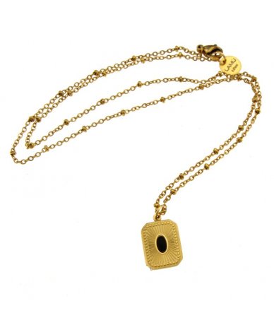 Collana in acciaio inox finitura oro pendente rettangolare con ossidiana naturale
