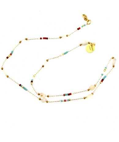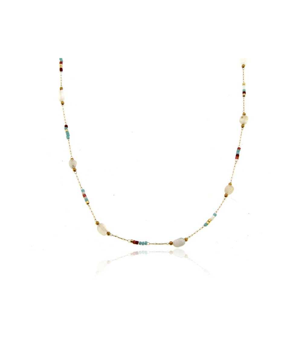 Collana in acciaio inox oro 18k con pietre di agata e corallini multicolore in vetro