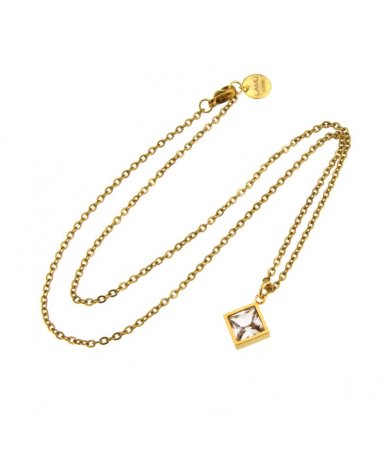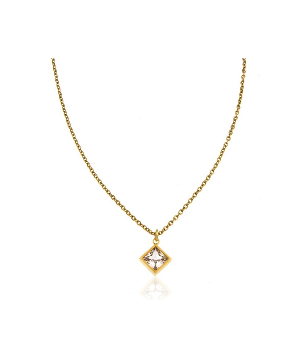 Collana in acciaio inox oro 18k con pendente rombo con zircone cristal