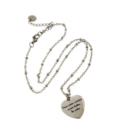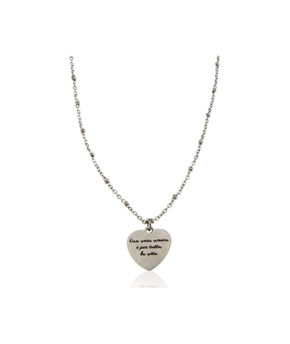 Collana in acciaio inox con pendente cuore inciso "Una vera amica è per tutta la vita"