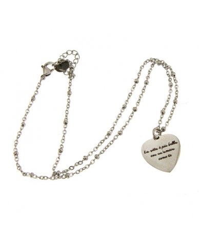 Collana in acciaio inox con pendente cuore inciso "La vita è più bella con un'amica come te"