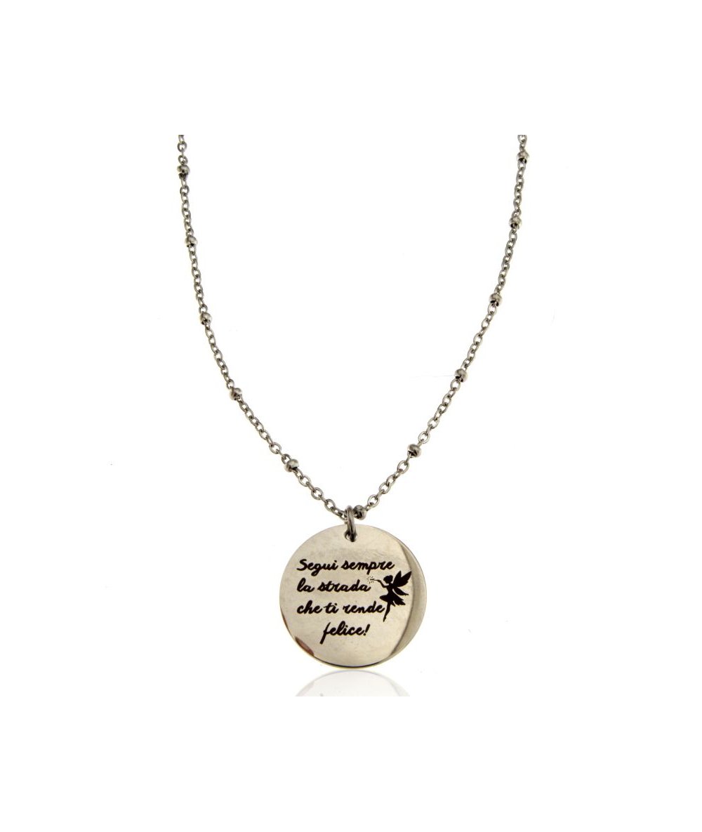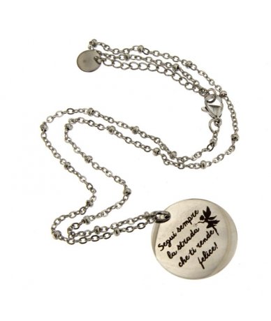 Collana in acciaio inox con pendente inciso "Segui sempre la strada che ti rende felice"