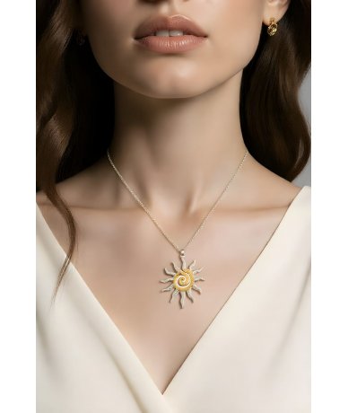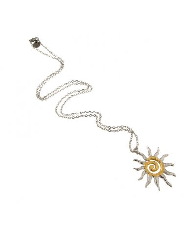 Collana in acciaio inox con pendente sole bicolore