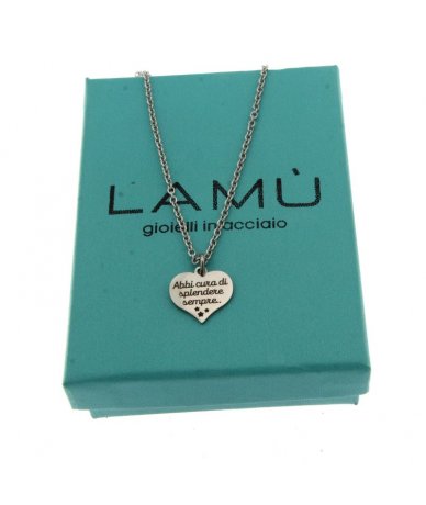 Collana bambina con cuore inciso "Abbi cura di splendere sempre"