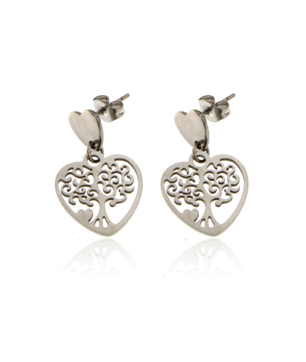 Orecchini in acciaio inox albero della vita in cuore