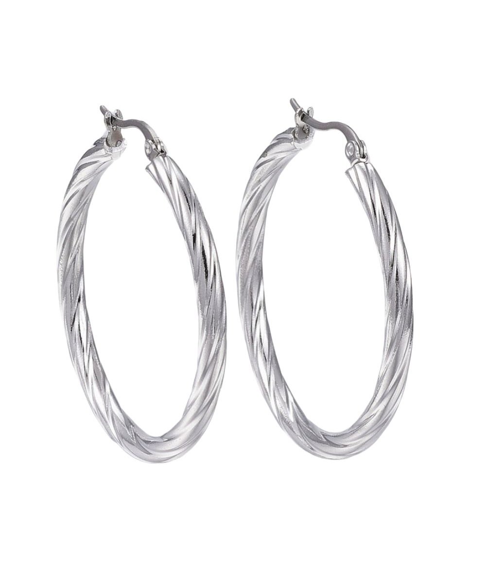 Orecchini cerchi tubolari ritorti in acciaio inox