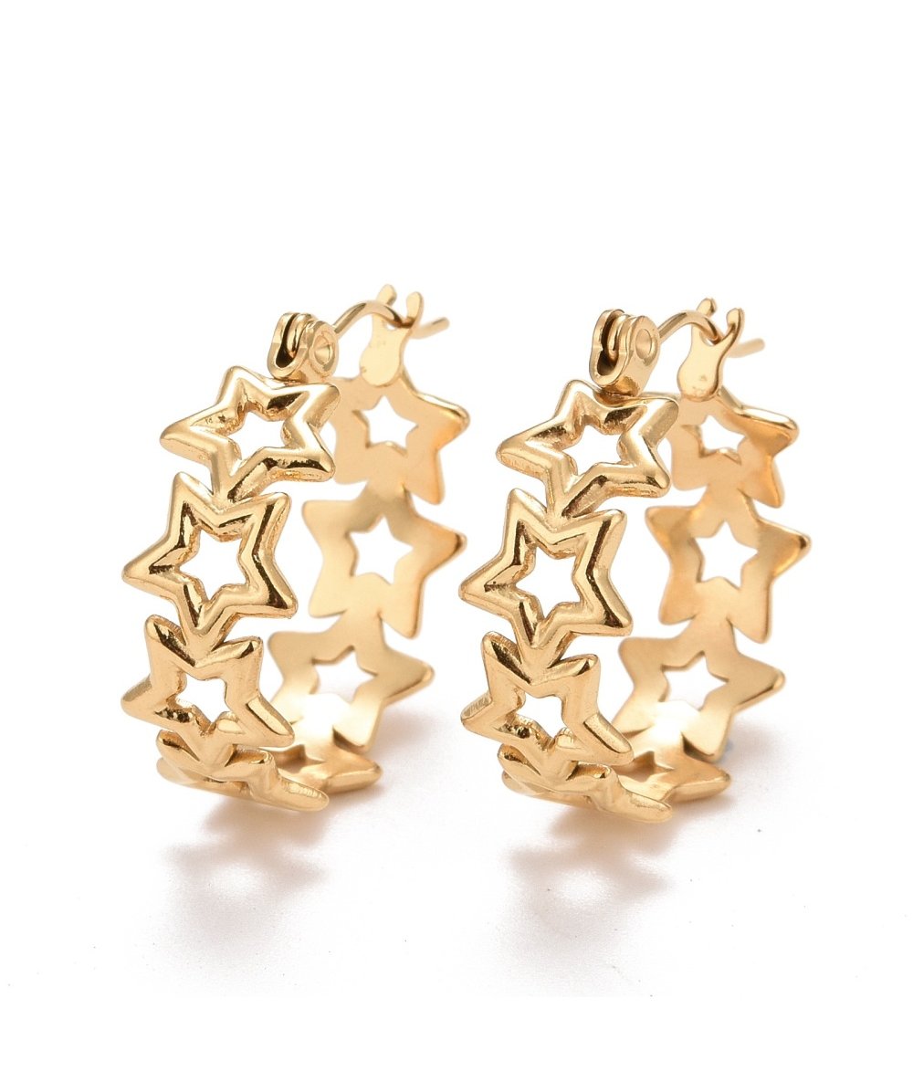 Orecchini cerchi larghi con stelle in acciaio inox finitura oro