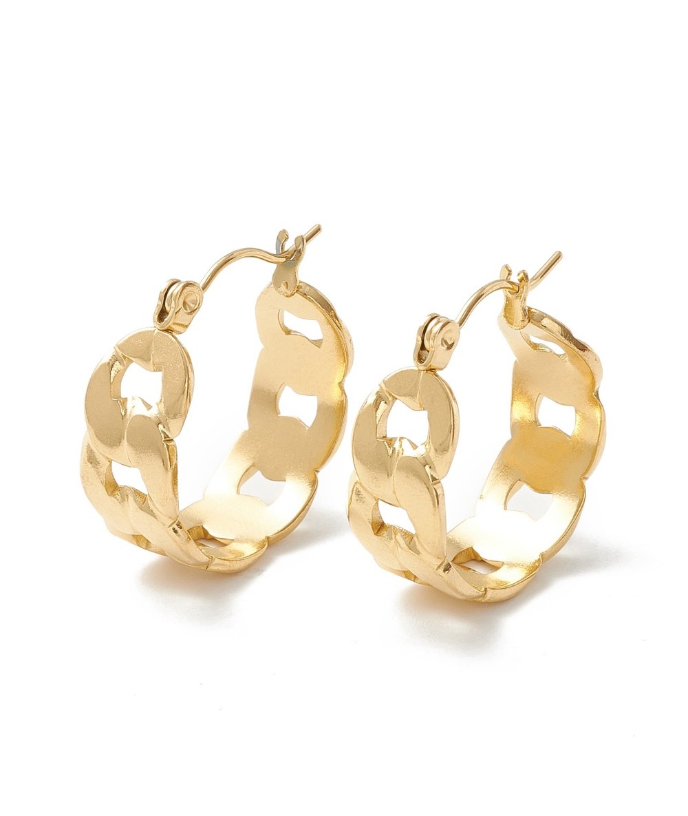 Orecchini cerchi larghi disegno catena in acciaio inox finitura oro
