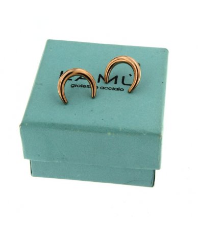 Orecchini a lobo doppio corno in acciaio inox finitura oro rosa - Lamù gioielli