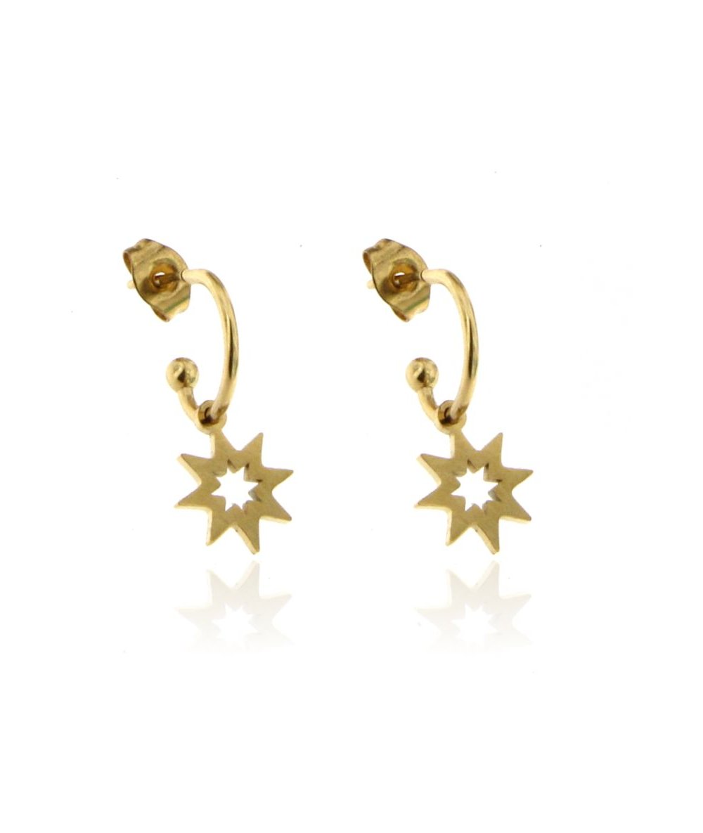 Orecchini cerchi con pendenti stella acciaio inox placcato oro 24K