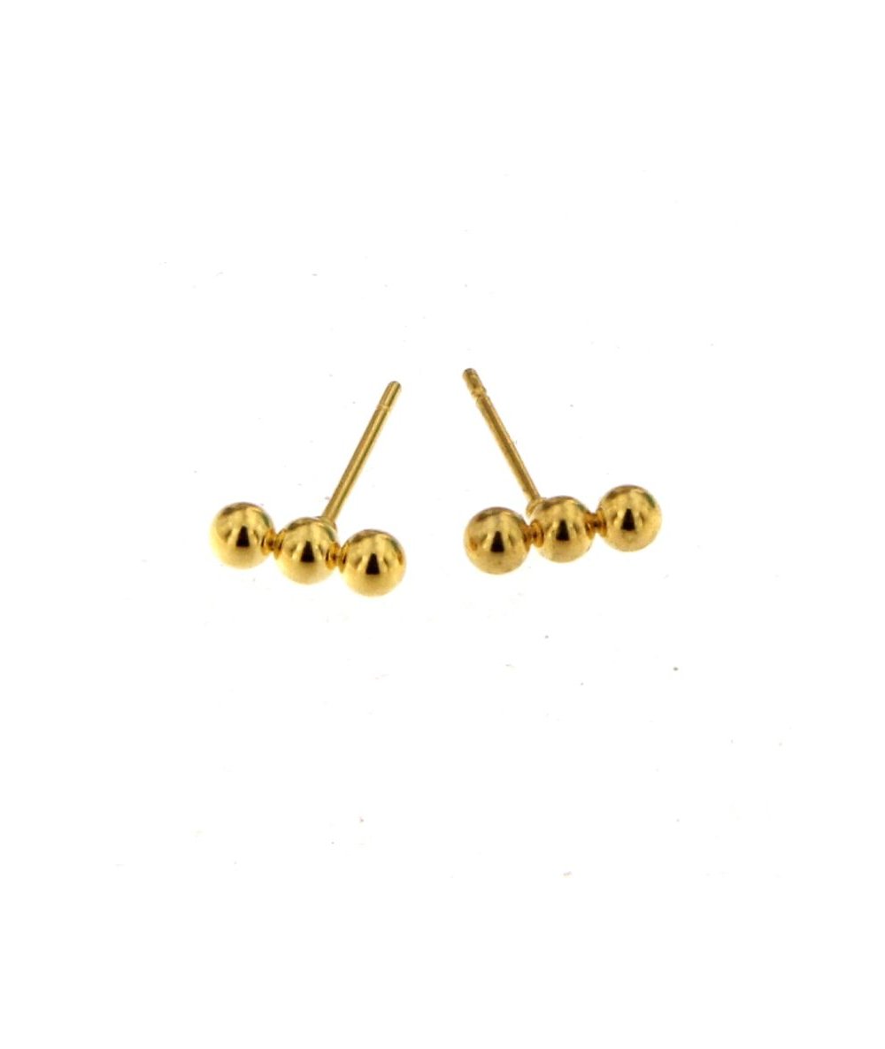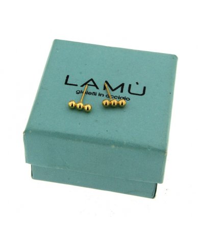 Orecchini piccoli con tre piccole sfere in acciaio inox finitura oro - Lamù gioielli