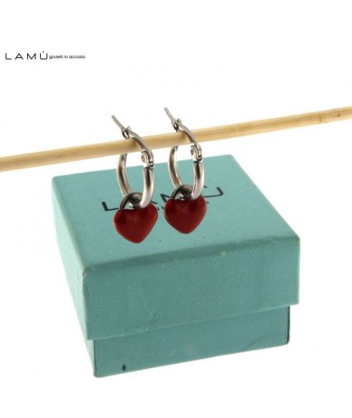 Orecchini cerchi in acciaio con cuore bombato smaltato rosso