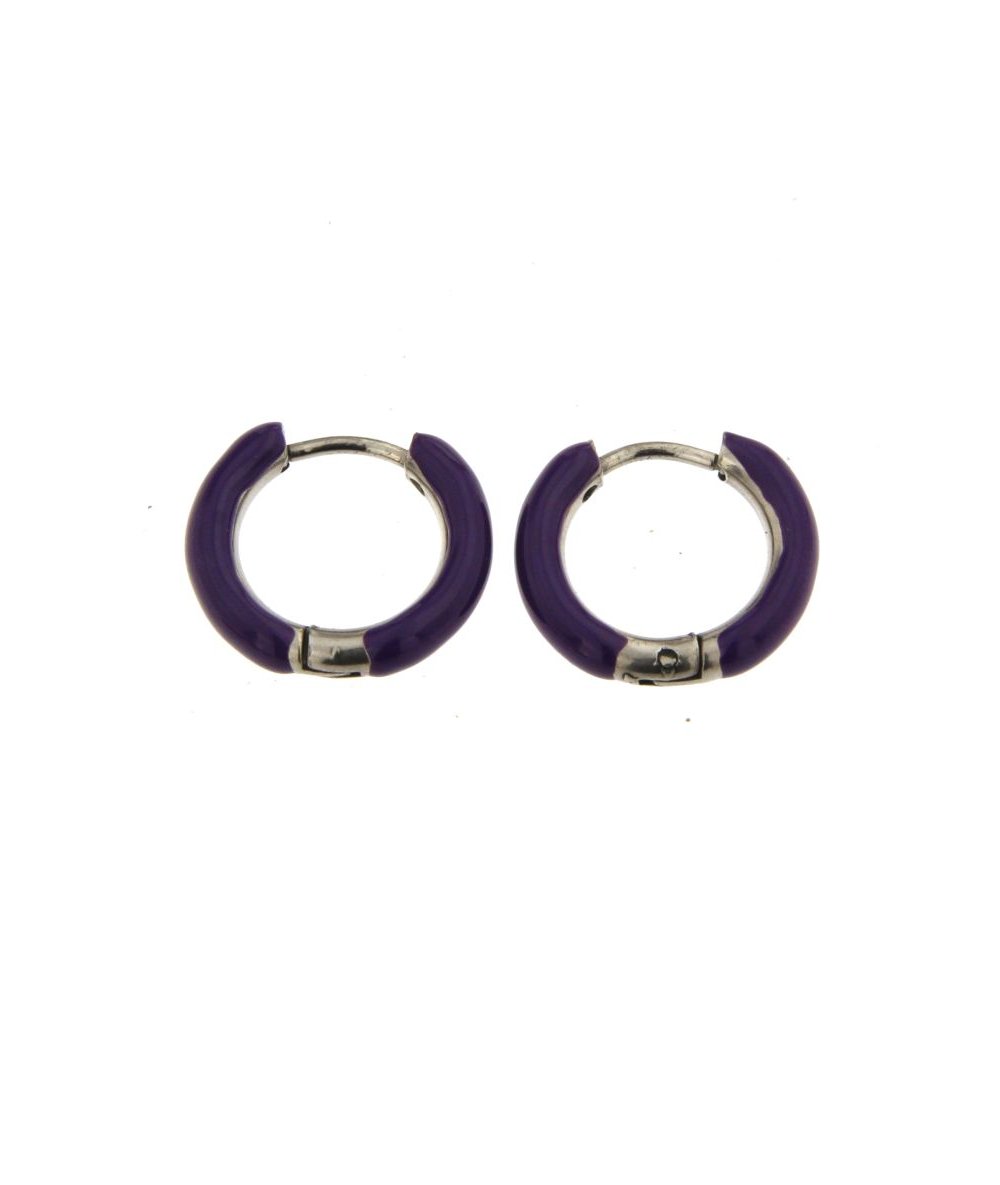 Orecchini cerchi smaltati viola in acciaio inox - Lamù gioielli