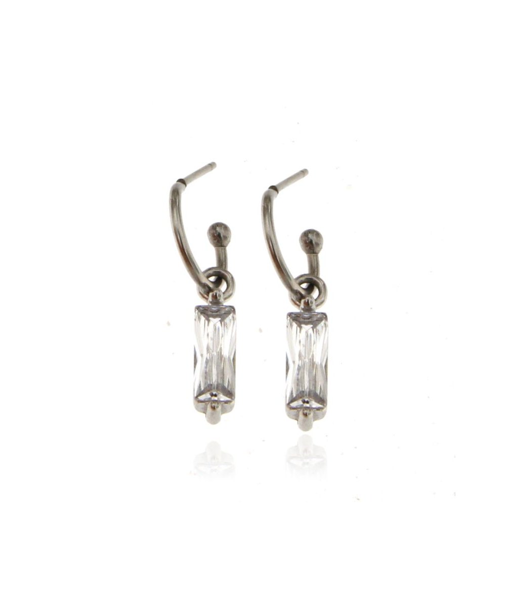 Orecchini cerchi in acciaio con pendente rettangolare zircone cristal